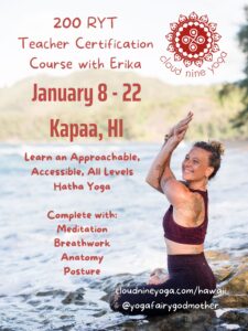 It is an extra special treat to train with Erika Faith Calig, the founder and creator of Cloud Nine Yoga, who has been teaching since 1995. All Yoga, Health, Healing, and Movement Arts students are accepted, no matter how much experience, your shape, or where you are on your life path.